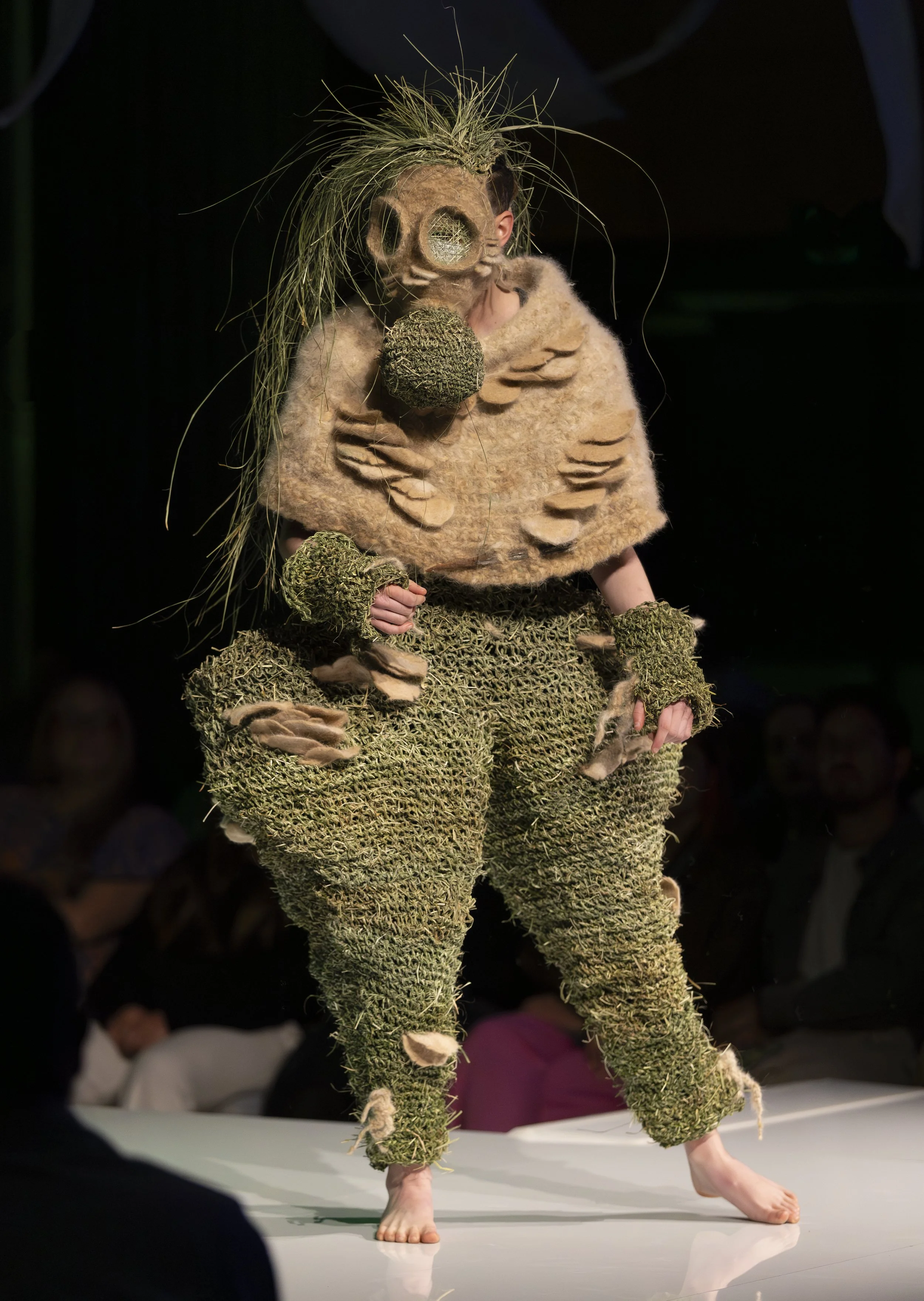 F: To me, sustainability has a few meanings. Use natural materials that will leave no trace, use re-claimed materials that would otherwise become landfill and don’t buy new. All of my wearable art uses at least one of these. For example, the wearable art piece I am making for the Australian Wearable Art Festival 2026 will use entirely re-claimed materials such as yarn, fabric and more rigid items as structural elements. I have also relied on community practices to source the tools and equipment to further reduce the environmental impact of this piece. My 2025 piece used 100% unusual natural materials and I even went to the extent of forgoing electrical means of production to make it. I try to be so mindful of every step of the process to help reduce the mark on our planet.